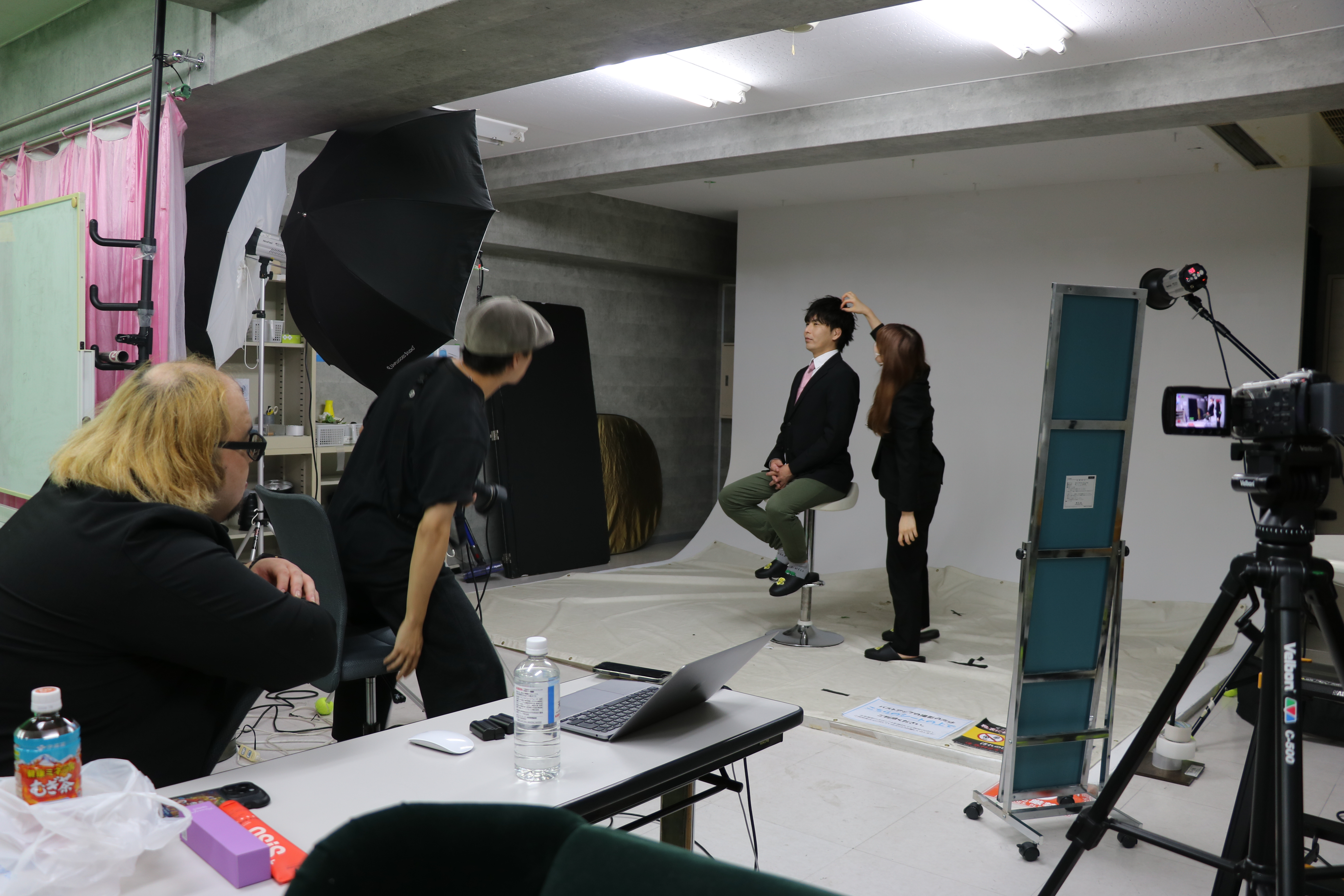 | ▲年に4回あるヘアスタイル撮影。今回は秋のヘアスタイルです。Jr.スタイリストも順番に参加し始めています。 | ▲撮影も経験豊富なスタッフが、指導しながら進めます。 時には自分のアイディアも織り交ぜながら撮影しています。 |