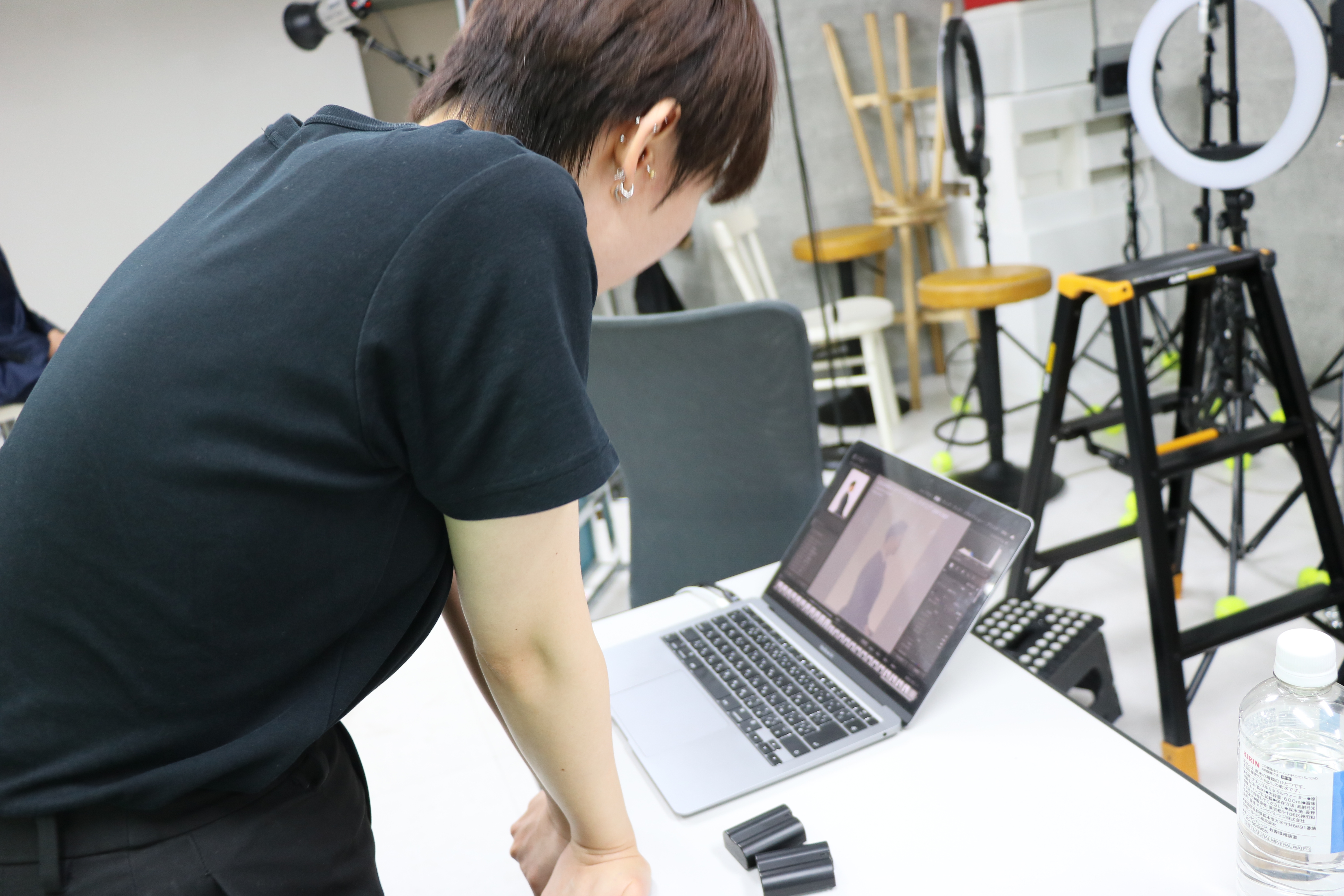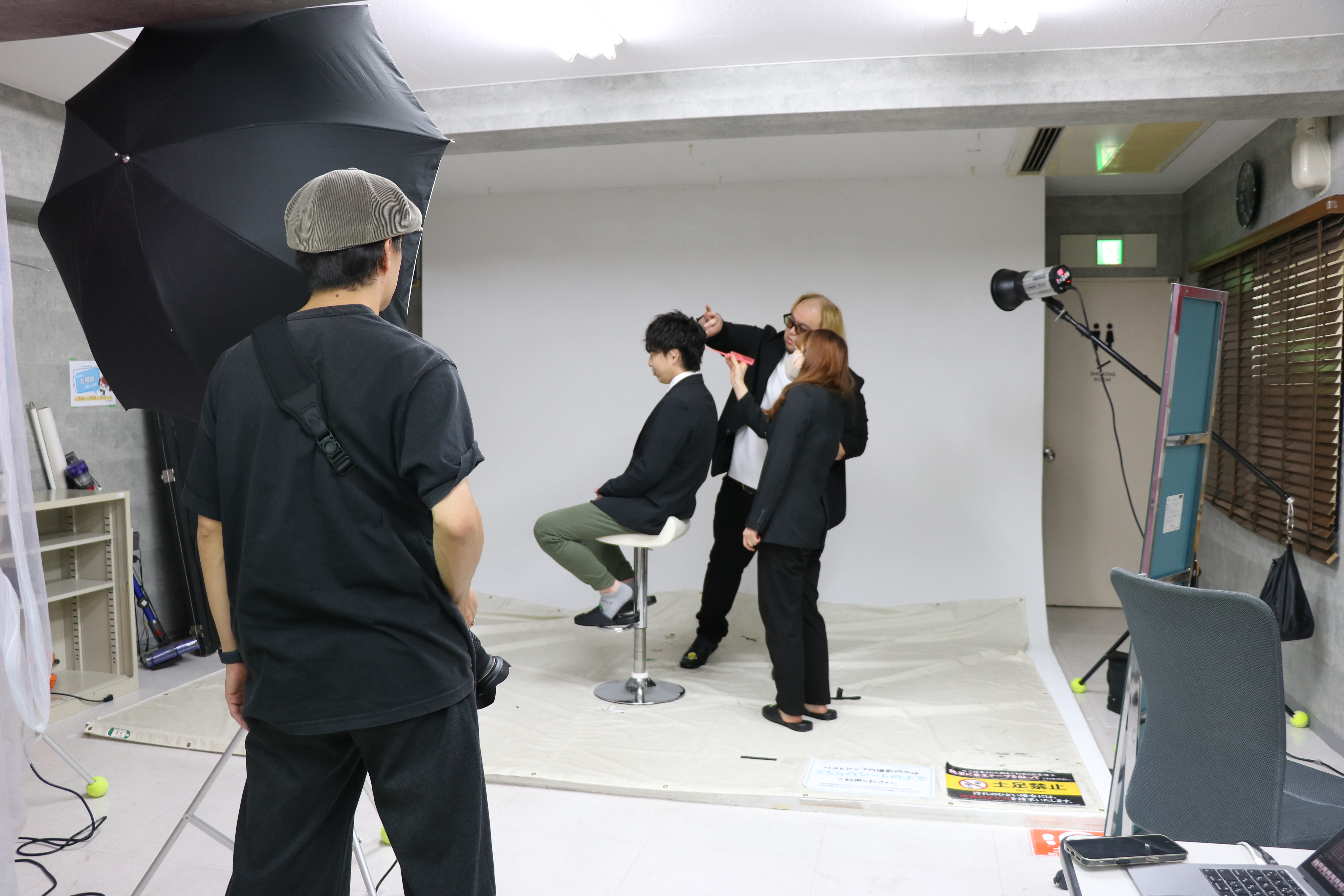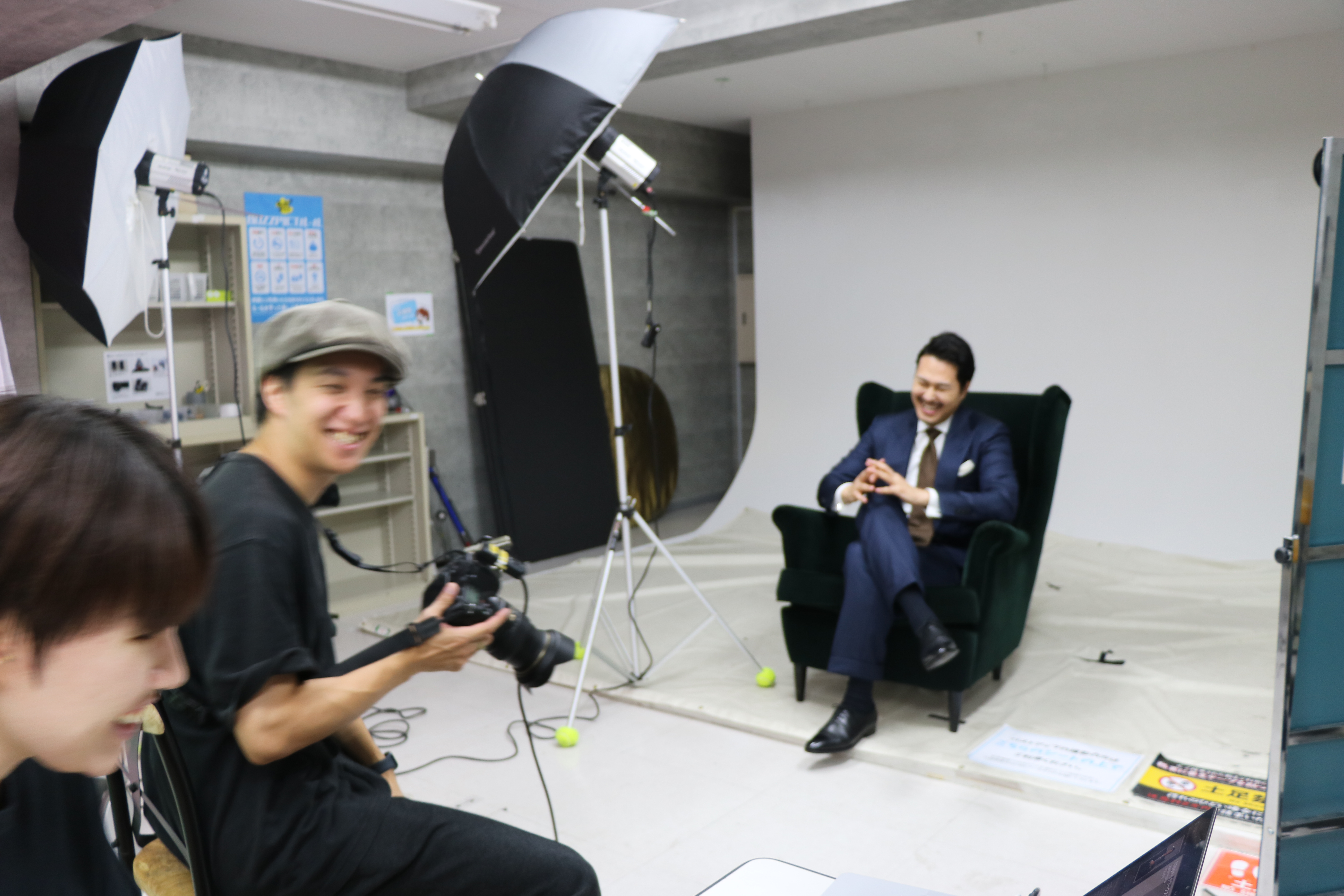 | ▲撮影した写真はその場でチェック!プロのカメラマンの出来栄えはいつも感心します。ホームページやサイトで使用できるよう、様々なカットの撮影を行います。 | ▲モデルはお客様にお願いしているため、プレゼントとして素敵なカットの撮影も!今回はビジネス雑誌の表紙のような写真がたくさん撮れました♪ |